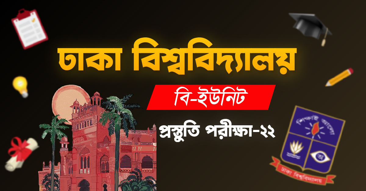 তোমার স্বপ্নের গন্তব্য – ঢাকা বিশ্ববিদ্যালয়! নিজেকে যাচাই করো এই B Unit প্রস্তুতি পরীক্ষার মাধ্যমে।উক্ত পরীক্ষায় প্রতিটি প্রশ্নের মান 1 এবং Negative mark 0.2 এবং সময় থাকবে 45min বাস্তব পরীক্ষার মতো প্রশ্ন, সময়ের চাপে সঠিক উত্তরের লড়াই,আর পরীক্ষায় ৯৫% বা তার বেশি নম্বর অর্জন করলেই জিতে নিন মূল্যবান পয়েন্ট, যা পরবর্তীতে রূপান্তর করা যাবে টাকায়। তোমার প্রস্তুতির আসল পরখ হবে এখানেই! তাই আর দেরি নয় – শুরু করো আজই!